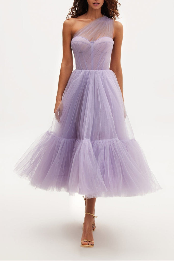 Lavender One-Shoulder Cocktail Tulle Dress