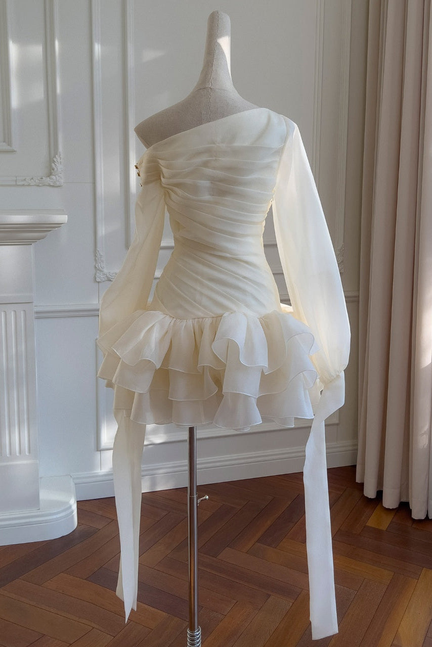 The Apricot Ruffle Diagonal Long Sleeve Mini Dress offers a sophisticated silhouette with its flattering diagonal ruffle detail that enhances movement and visual interest. Crafted in a soft apricot hue, this mini dress combines long sleeves and a tailored fit, making it perfect for both day and evening occasions. Its elegant design balances feminine charm with modern style, providing a versatile option for wardrobes seeking refined yet playful pieces.