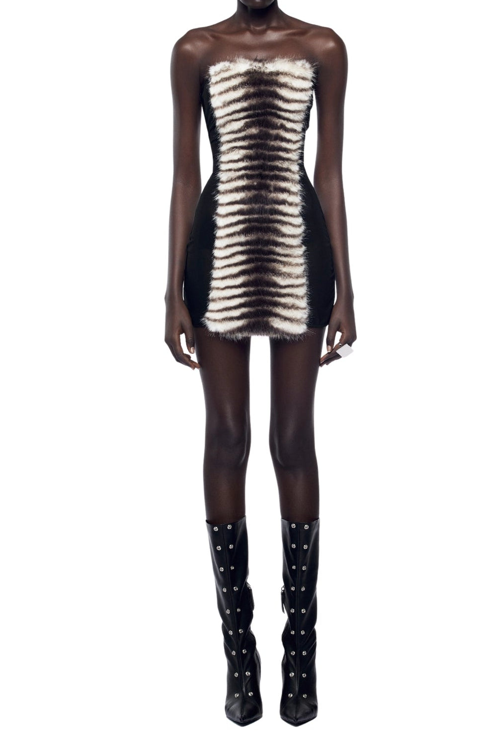 arlene Plush Cut Strapless mini Dress in black - zebra – OH CICI