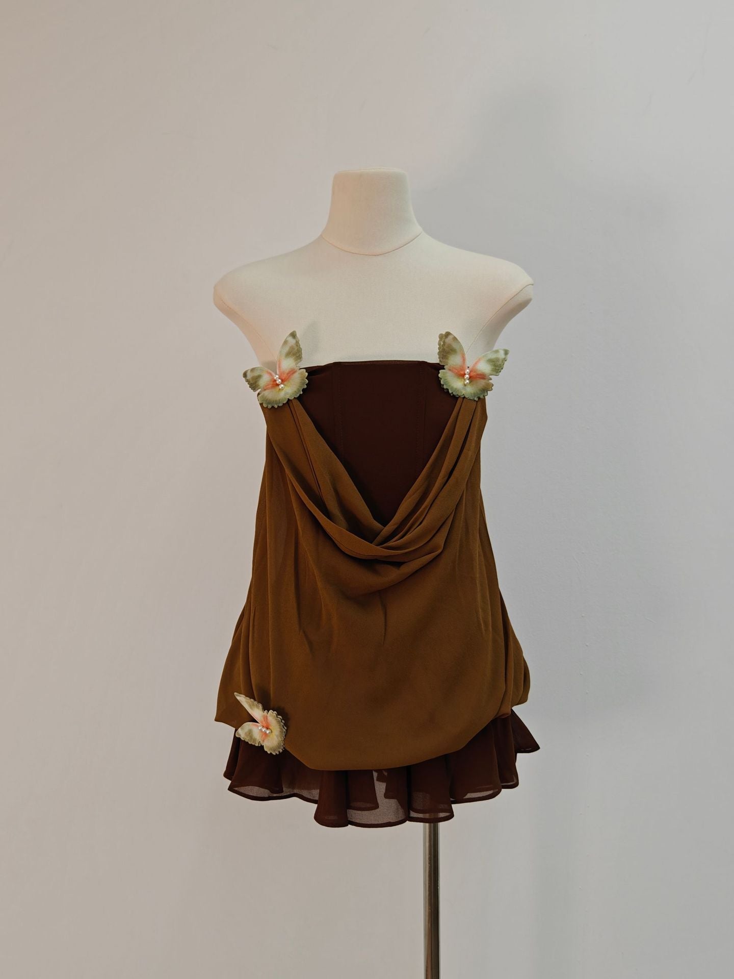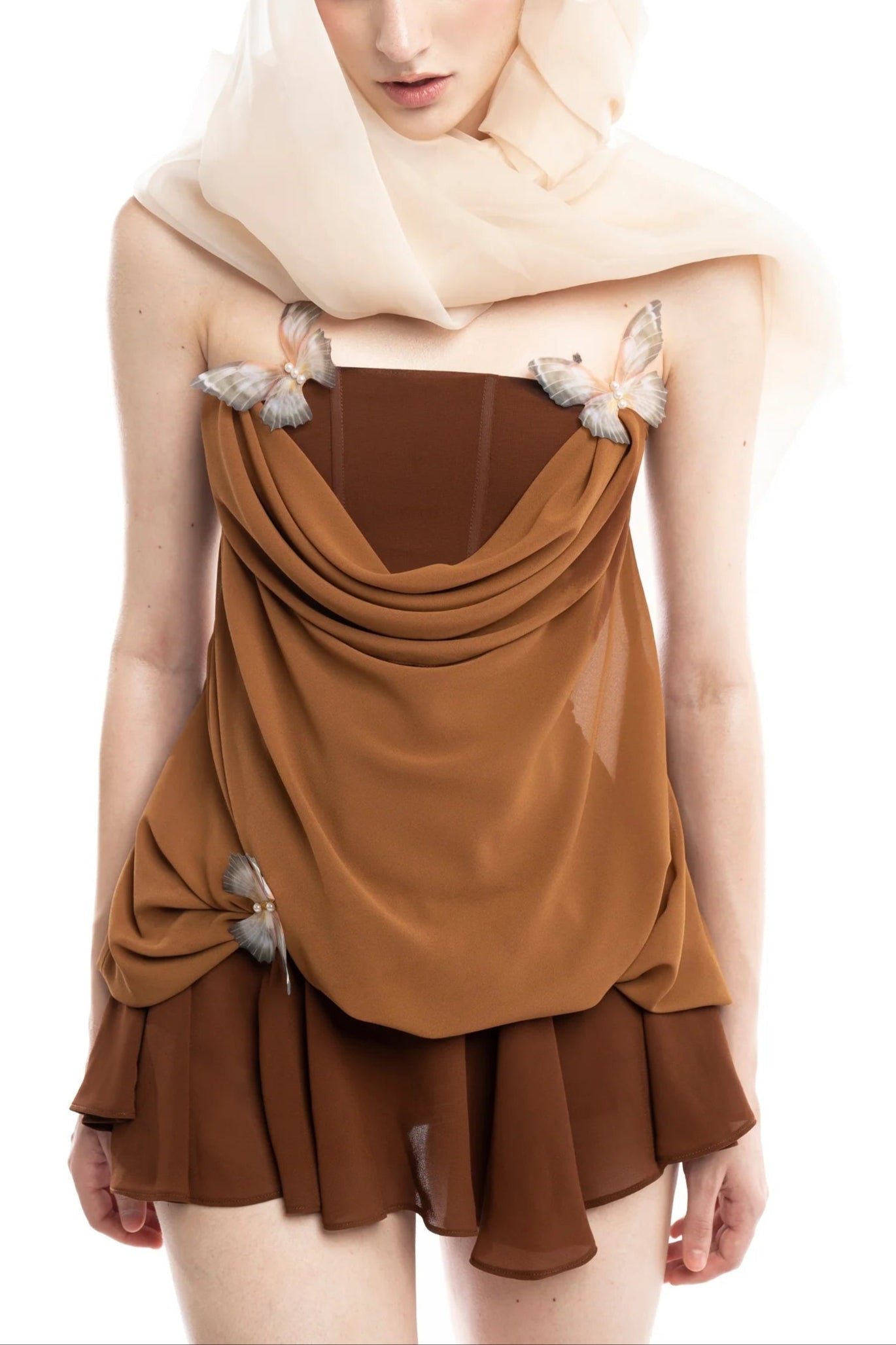 Elevate your wardrobe with this brown 3D Butterfly Fishbone Tunic Top and Mini Skirt Set, expertly designed to combine unique textured detailing with flattering silhouettes. The tunic top features intricate butterfly-inspired 3D accents and a structured fishbone pattern, enhancing visual interest while maintaining a polished fit. Paired with a matching mini skirt, this set offers a cohesive look that balances sophistication and contemporary style, perfect for making a confident statement at any occasion. Crafted for both comfort and elegance, it’s an ideal choice for fashion-forward individuals seeking refined yet distinctive pieces.