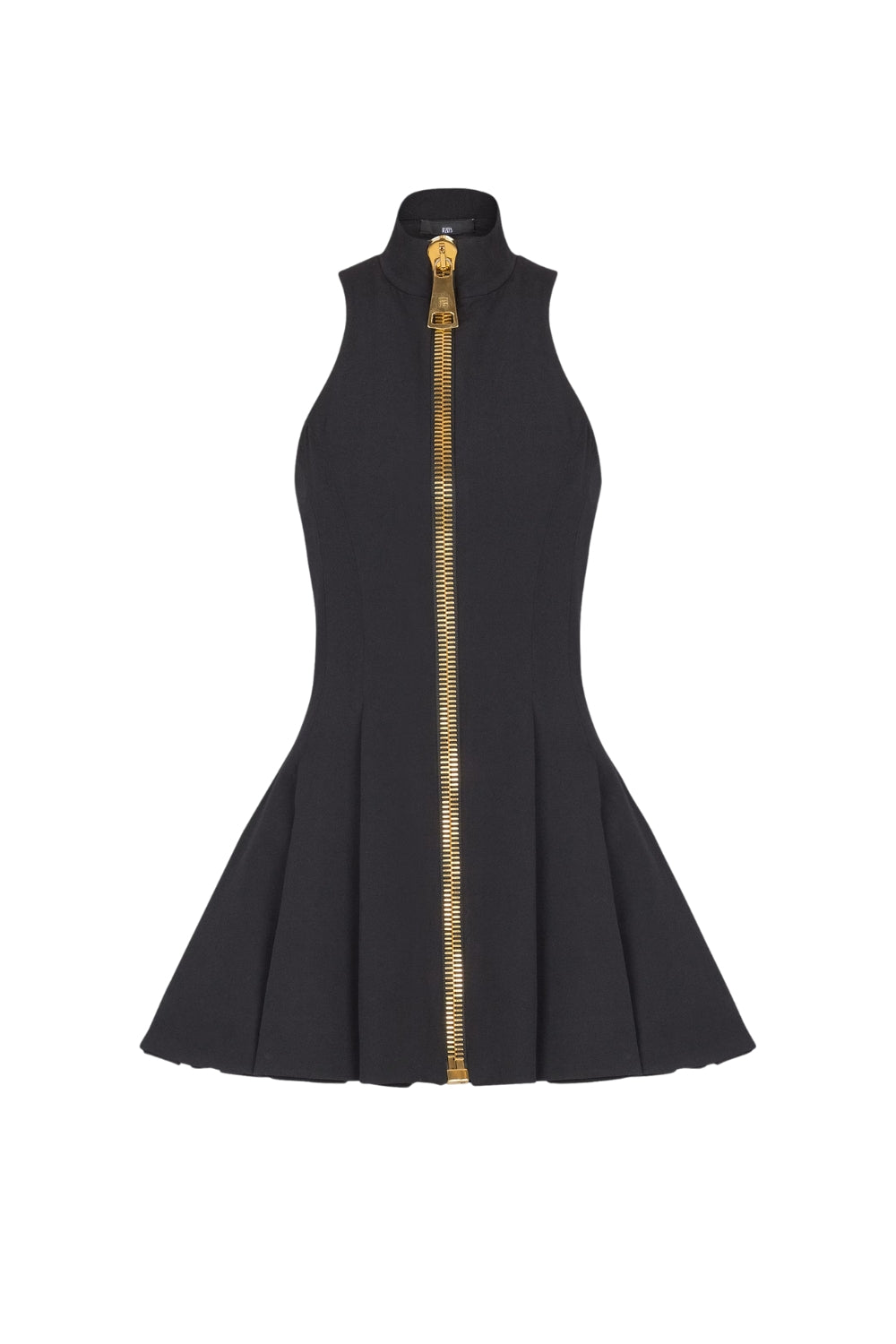 Crafted from premium grain de poudre wool, the Carol black halterneck dress combines refined texture with a flattering silhouette. Its halterneck design elegantly frames the shoulders, while the structured wool fabric ensures durability and shape retention. Ideal for formal occasions, this dress offers a sophisticated blend of comfort and style, showcasing expert tailoring and timeless appeal.