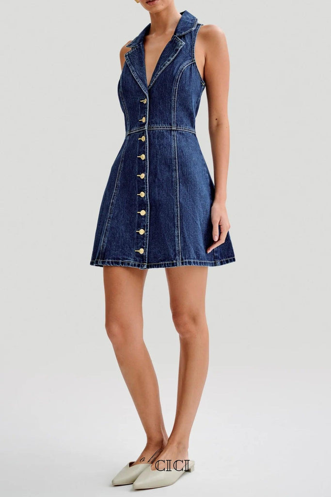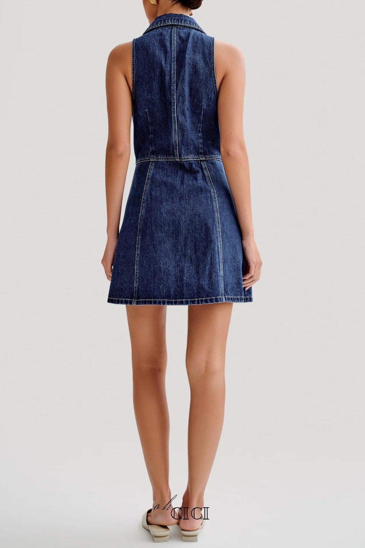 The eartha Collared Denim Mini Dress in Dark Blue combines classic denim durability with a refined silhouette. Featuring a structured collar and a flattering mini length, this dress offers a versatile foundation for both casual and polished looks. Its dark blue wash adds depth and sophistication, making it a reliable choice for everyday wear or layered styling. Crafted to provide comfort without compromising style, this dress embodies functional elegance for a confident, modern wardrobe.
