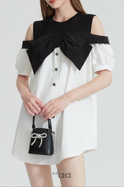 The Evelyn Off-shoulder Contrast Bow Mini Dress offers a refined blend of elegance and contemporary style. Its off-shoulder design highlights the neckline, while the contrasting bow detail adds a sophisticated focal point. Tailored to a flattering mini length, this dress balances playful charm with expert craftsmanship, making it ideal for occasions that require a polished yet modern silhouette.