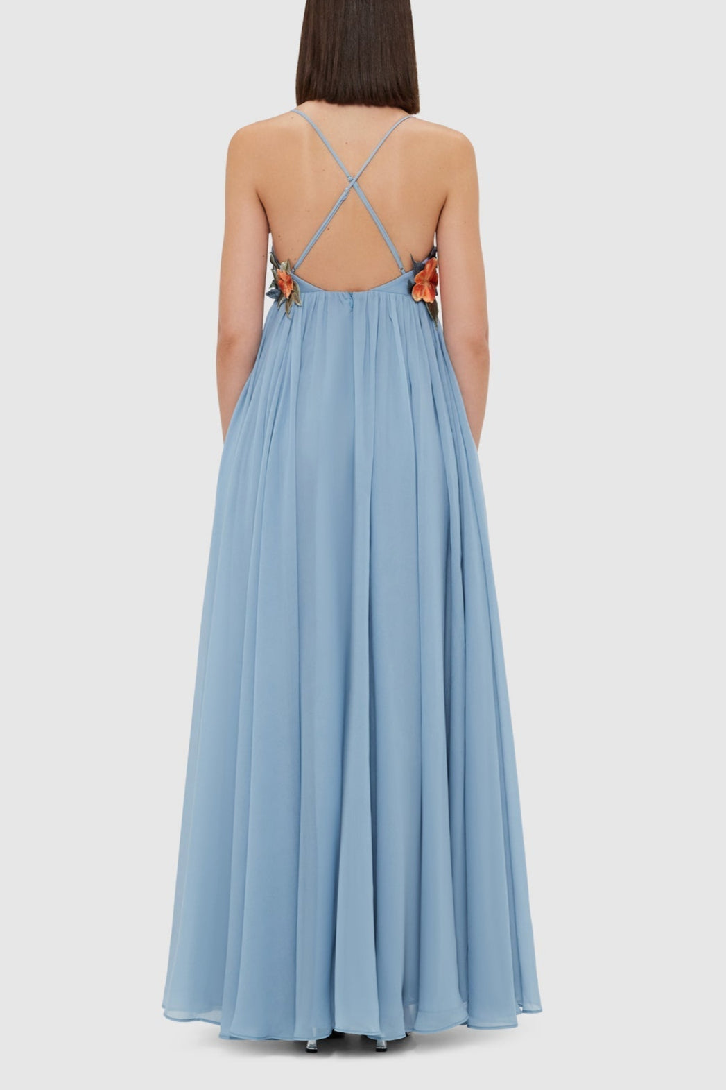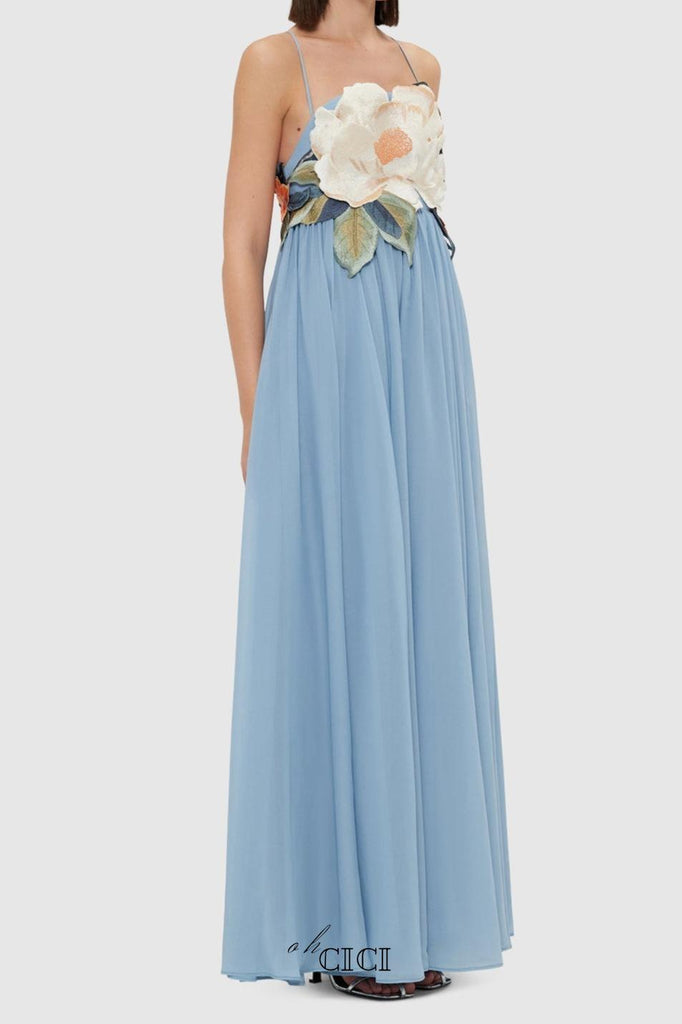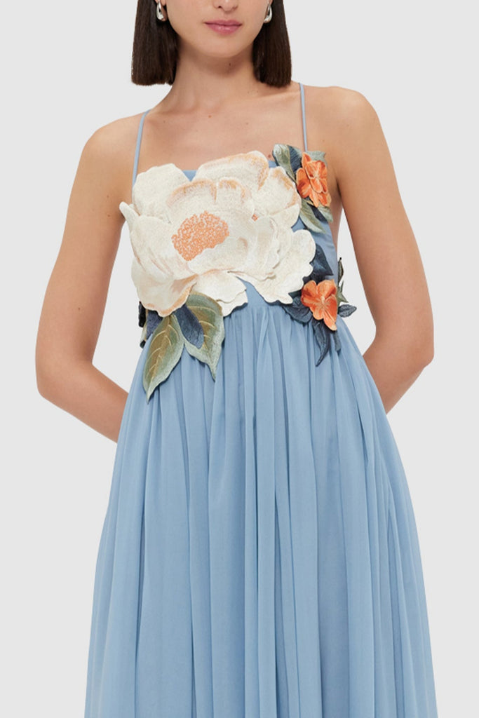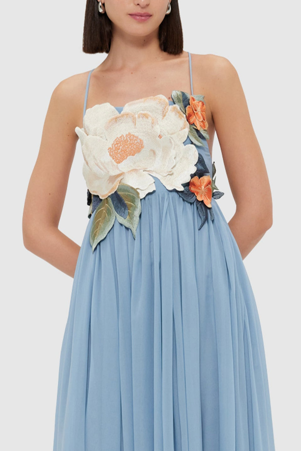 Elevate your style with the joanne Appliqué Floral Maxi Dress in Powder Blue. The delicate floral appliqué adds a touch of elegance to this dress, while the light, airy material keeps you comfortable all day. Perfect for any occasion, this dress is a must-have for your wardrobe.