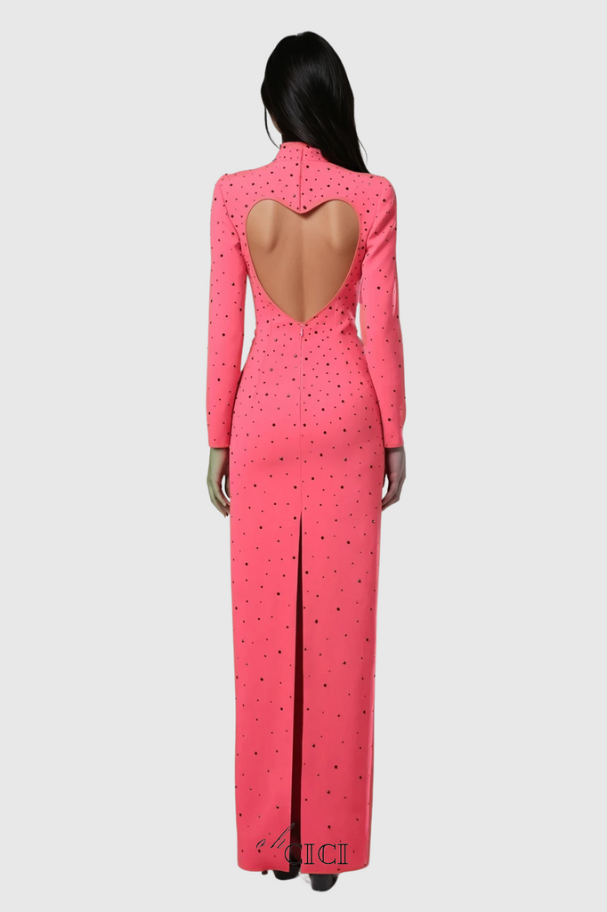 This Berenice Heart Cutout Long Sleeve Maxi Dress is the perfect mix of elegance and romance. With its unique heart cutout design and long sleeves, it's perfect for any special occasion. Made with high quality material, it offers both style and comfort. Let this dress steal the show at your next event.
