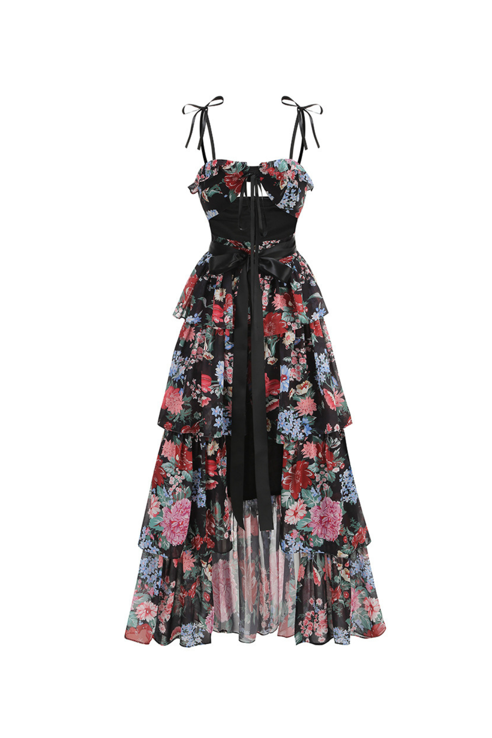 This sophisticated Carlin maxi dress combines romantic florals with contemporary design elements. The strategic cutouts create visual interest while the layered construction adds dimension and movement to the silhouette. Crafted with a flowing fabric that gracefully skims the body, this floor-length piece transitions effortlessly from daytime events to evening occasions. The floral print infuses feminine charm into this versatile statement dress that balances elegance with modern sensibility.