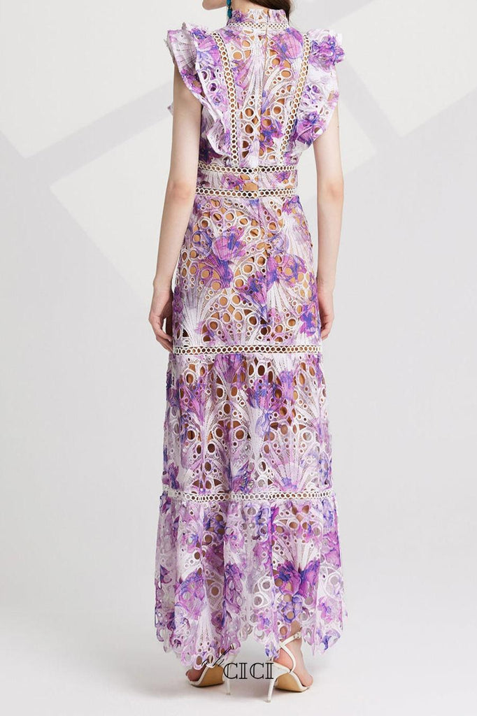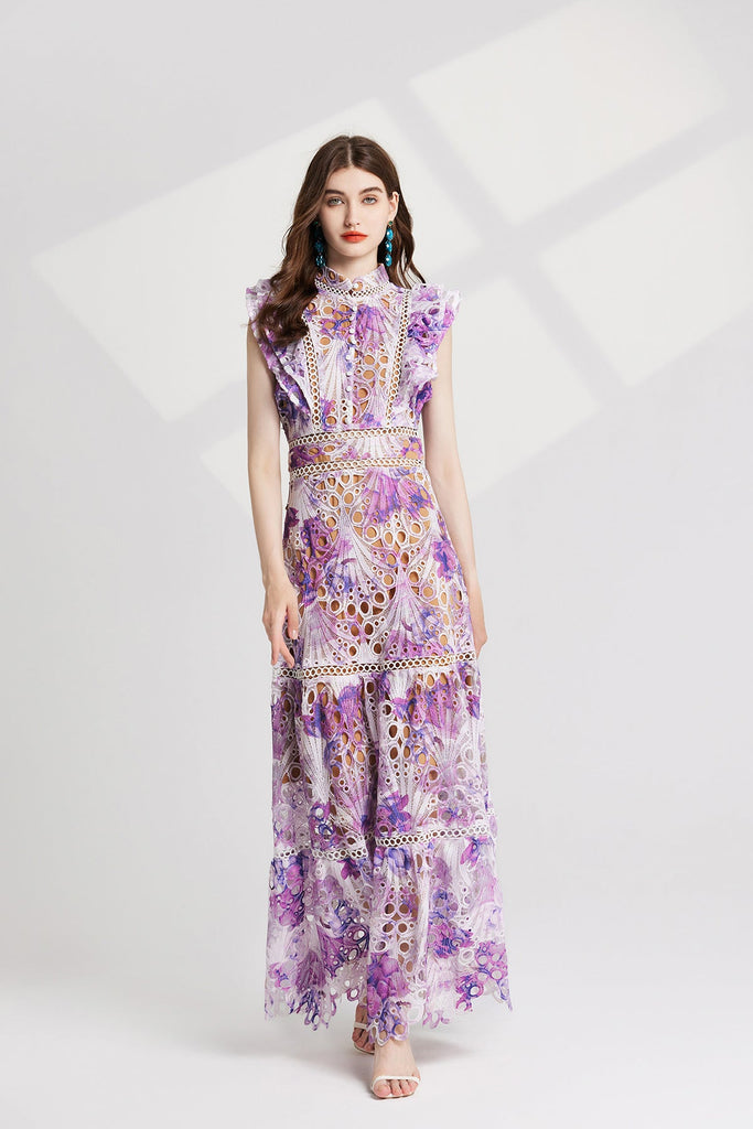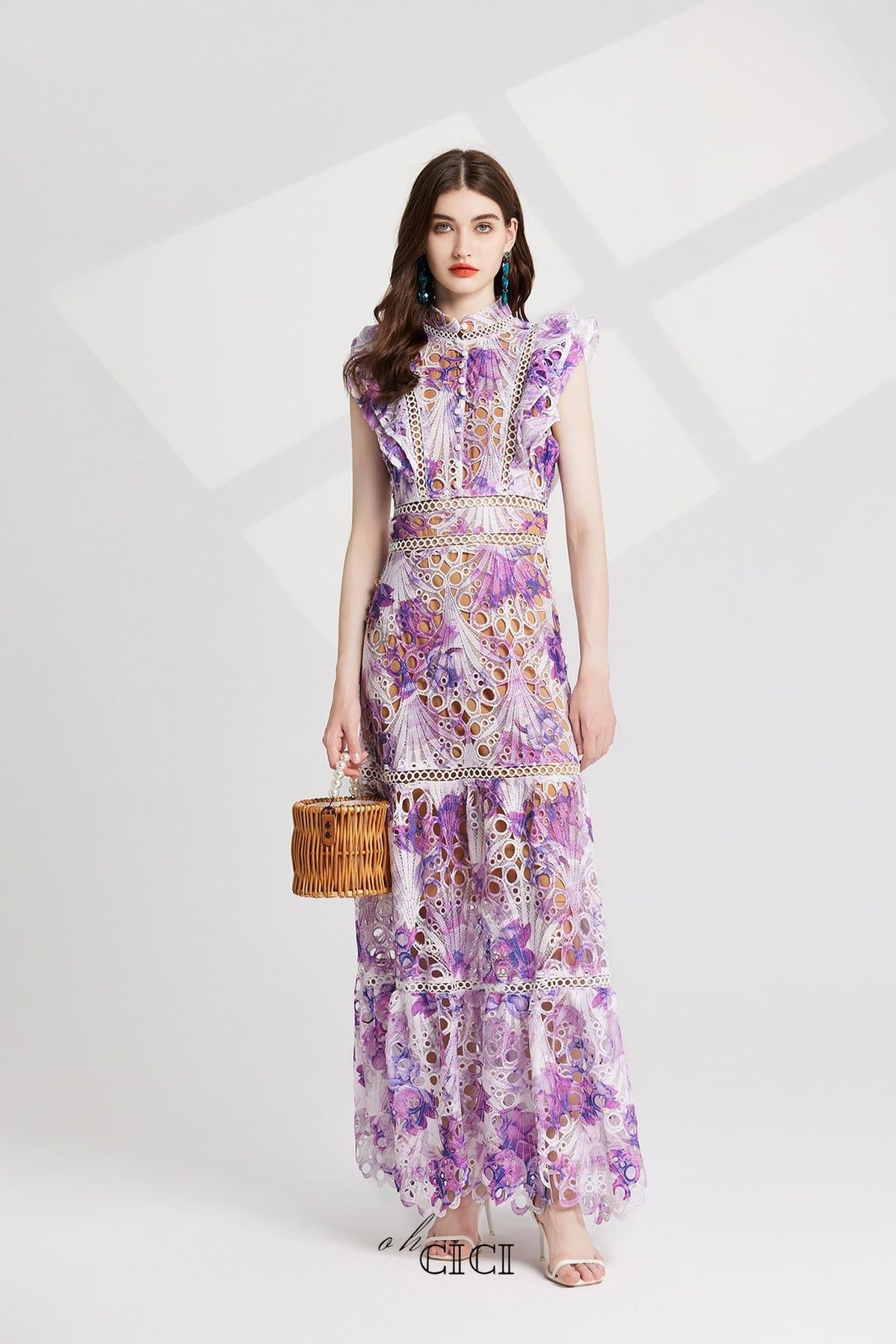 Expertly crafted, the Chloe Hollow Out Flower Embroidery Maxi Dress adds a touch of elegance to any occasion. Featuring intricate floral embroidery and a beautiful purple hue, this stunning dress is both stylish and feminine. Made with high-quality materials, it provides comfort and sophistication for a one-of-a-kind look.