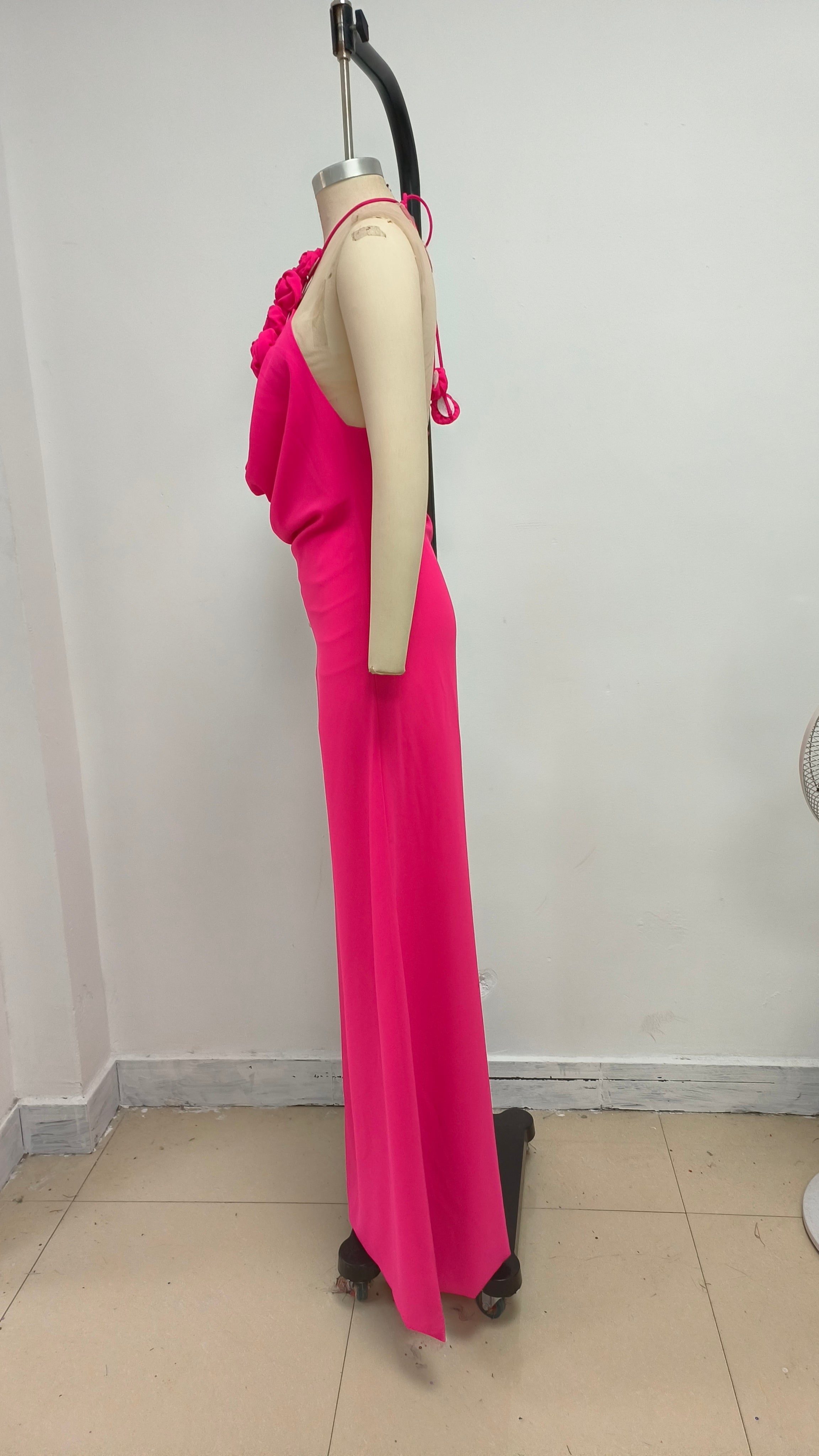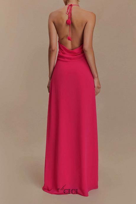 Experience the beauty of summer with our Floral halterneck high collar maxi dress in Rose Pink. Featuring a delicate halterneck design and a high collar, this dress will make you stand out in any occasion. Its romantic floral pattern adds a touch of elegance and femininity. Perfect for warm weather and outdoor events.