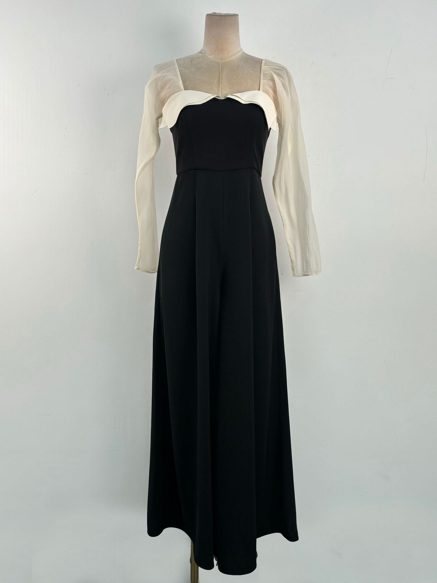 JENNY TULLE SLEEVE SQUARE NECK MAXI DRESS IN BLACK