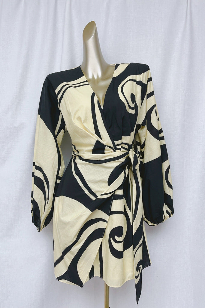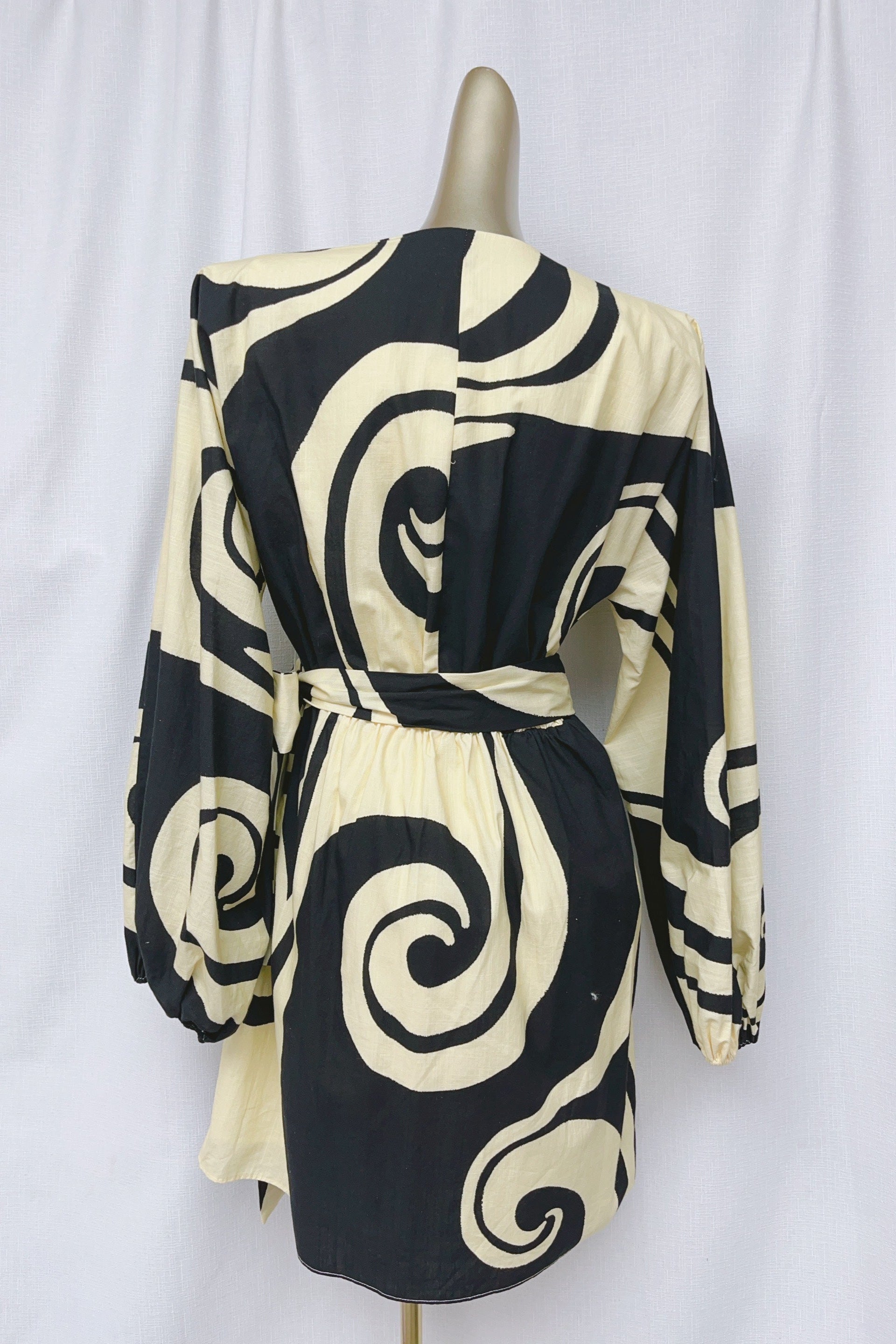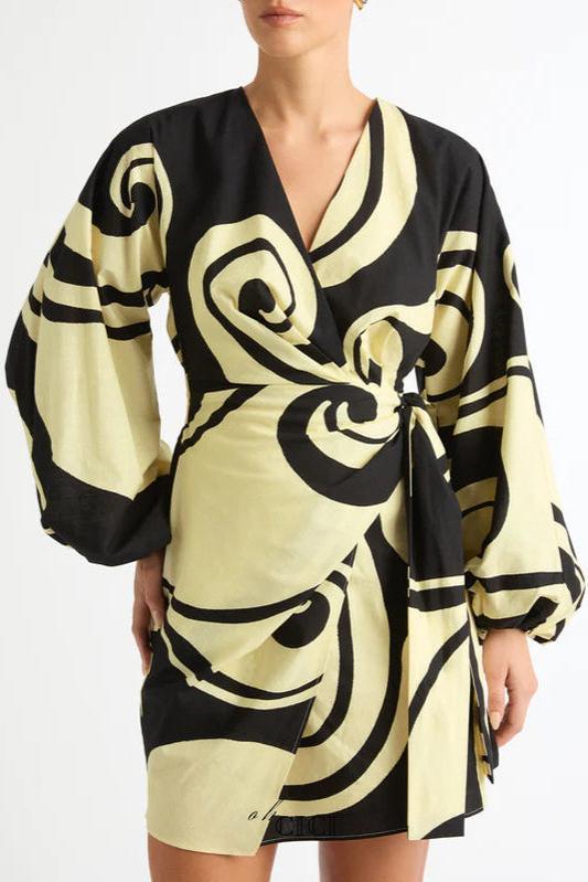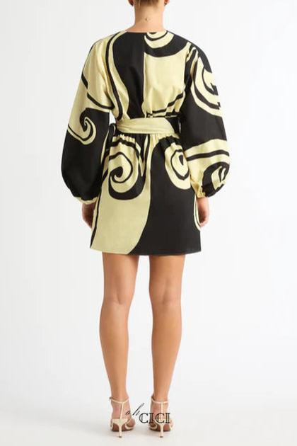 This Oceanic Swirl V-Neck Puff Sleeve Mini Dress combines elegant design with modern style. Featuring a flattering V-neckline and voluminous puff sleeves, it enhances your silhouette while offering comfortable wear. The mini length adds a playful, youthful touch, and the subtle oceanic swirl pattern brings a unique, artistic flair to your wardrobe. Ideal for both casual outings and special occasions, this dress balances sophistication and trend-forward appeal.