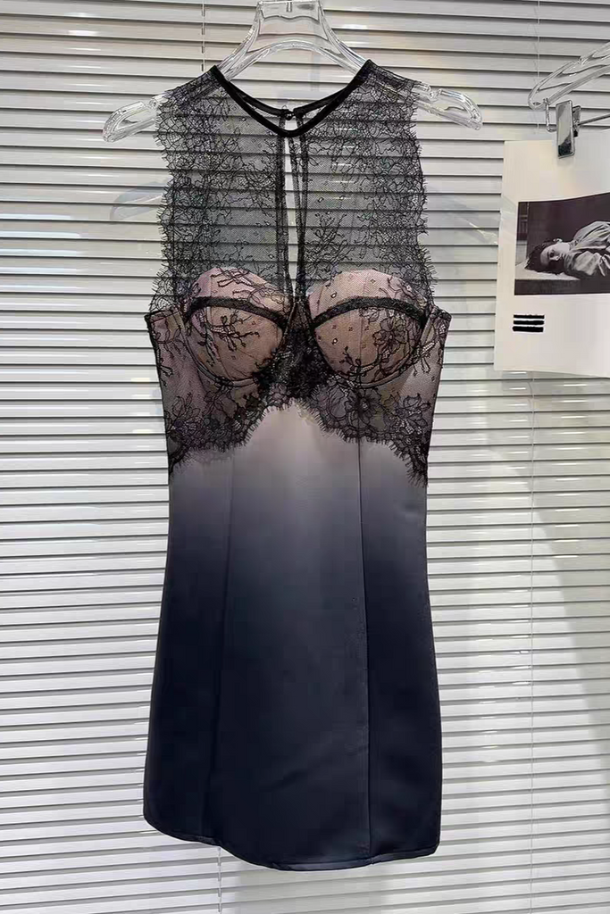 This nude ombre black under-bust corset mini skirt set features a flattering under-bust corset top and a stylish mini skirt. The ombre design adds a touch of elegance while the off-white color offers versatility in styling. Perfect for those looking for a chic and seductive outfit.