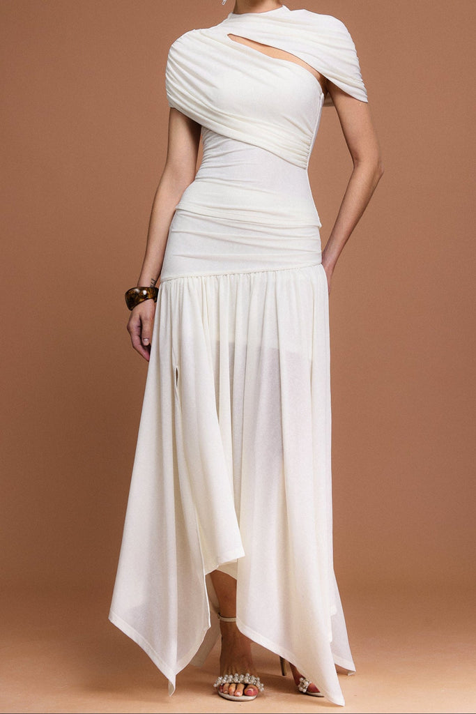 kristin Short Sleeves Asymmetric Folds Top And Skirt Two-Piece Set