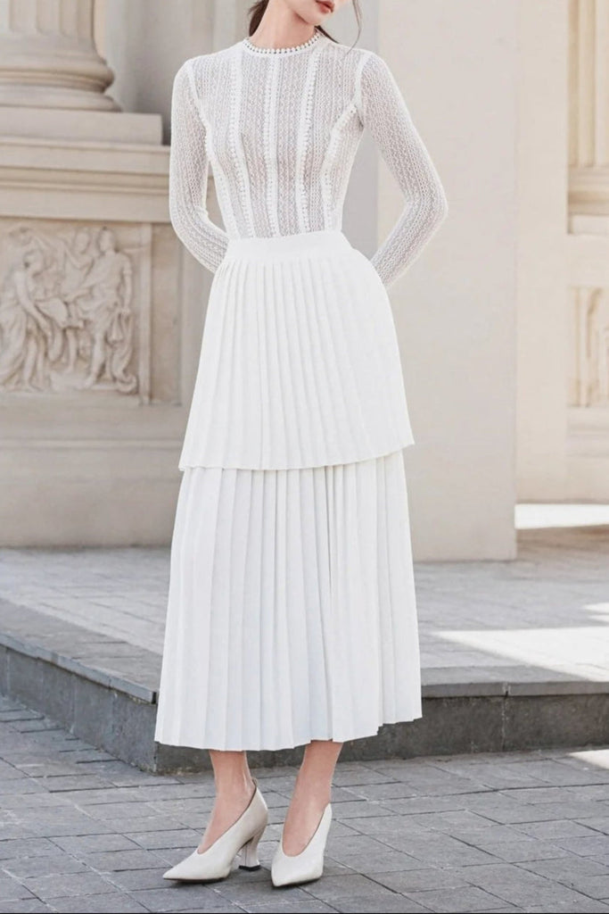 black grace Long Sleeves Pearl Top & Skirt Two-Piece Set