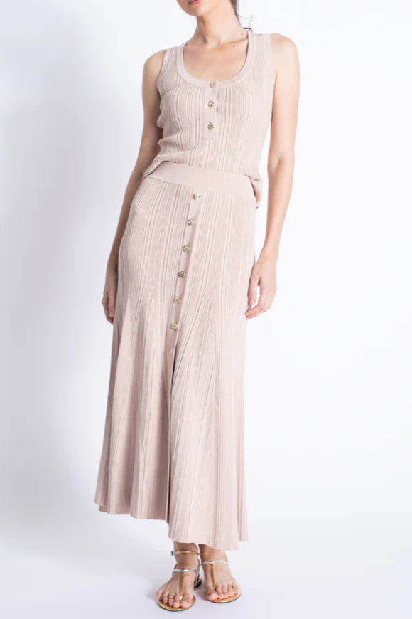 celeste Tweed Button-Front Vest Pleated Skirt Set in apricot