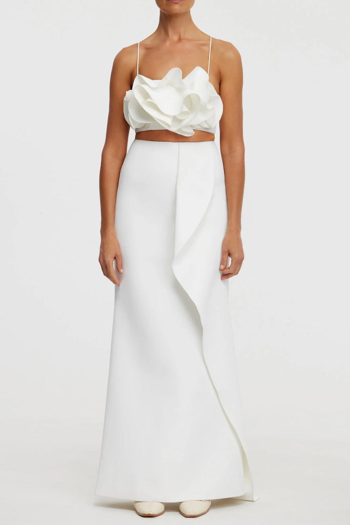 christine Off-shoulder pleated two-piece mermaid skirt in black