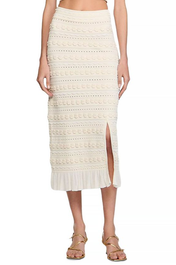 damla white Puff Sleeves Dot Printed Top And Skirt Two-Piece Set