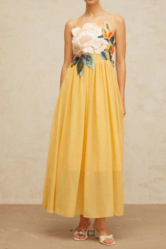 sheila flower embellished bodycon mini dress in yellow