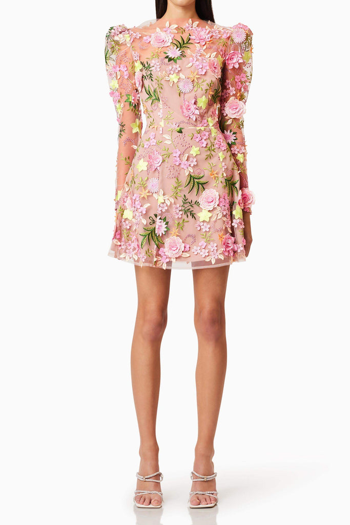 Miamor Floral Appliqué Mini Dress - Black