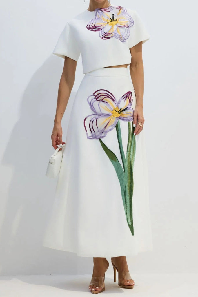 meredith leather top flower mini skirt set in black