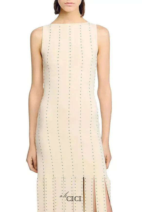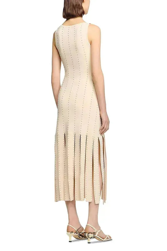 Get ready to make a fashionable statement with the marjorie Fringed Knit Maxi Dress in Ecru! This stunning dress features a beautiful fringe detailing and a sleek maxi design, perfect for any occasion. Stay stylish and comfortable with this must-have addition to your wardrobe.