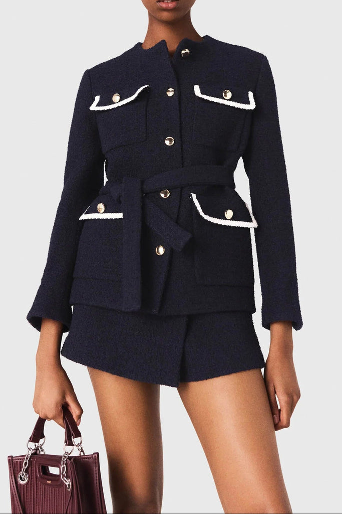 Elevate your wardrobe with the Sigrid navy blue 4-pocket tweed jacket—a timeless piece that brings sophistication to any outfit. Crafted from quality tweed fabric, this jacket features four functional pockets for practical everyday wear. The classic navy hue pairs effortlessly with jeans, trousers, or skirts, making it a versatile addition to your closet. Whether you're heading to the office or a casual gathering, this structured jacket offers the polish and comfort you deserve. A wardrobe essential that works as hard as you do.