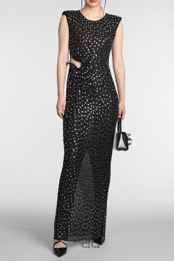 The xaviera Square Rhinestone maxi Dress is a stunning and elegant choice for any special occasion. With its square neckline and dazzling rhinestone details, this black maxi dress is sure to turn heads. The high-quality fabric and flattering silhouette make it a comfortable and chic option for any event.