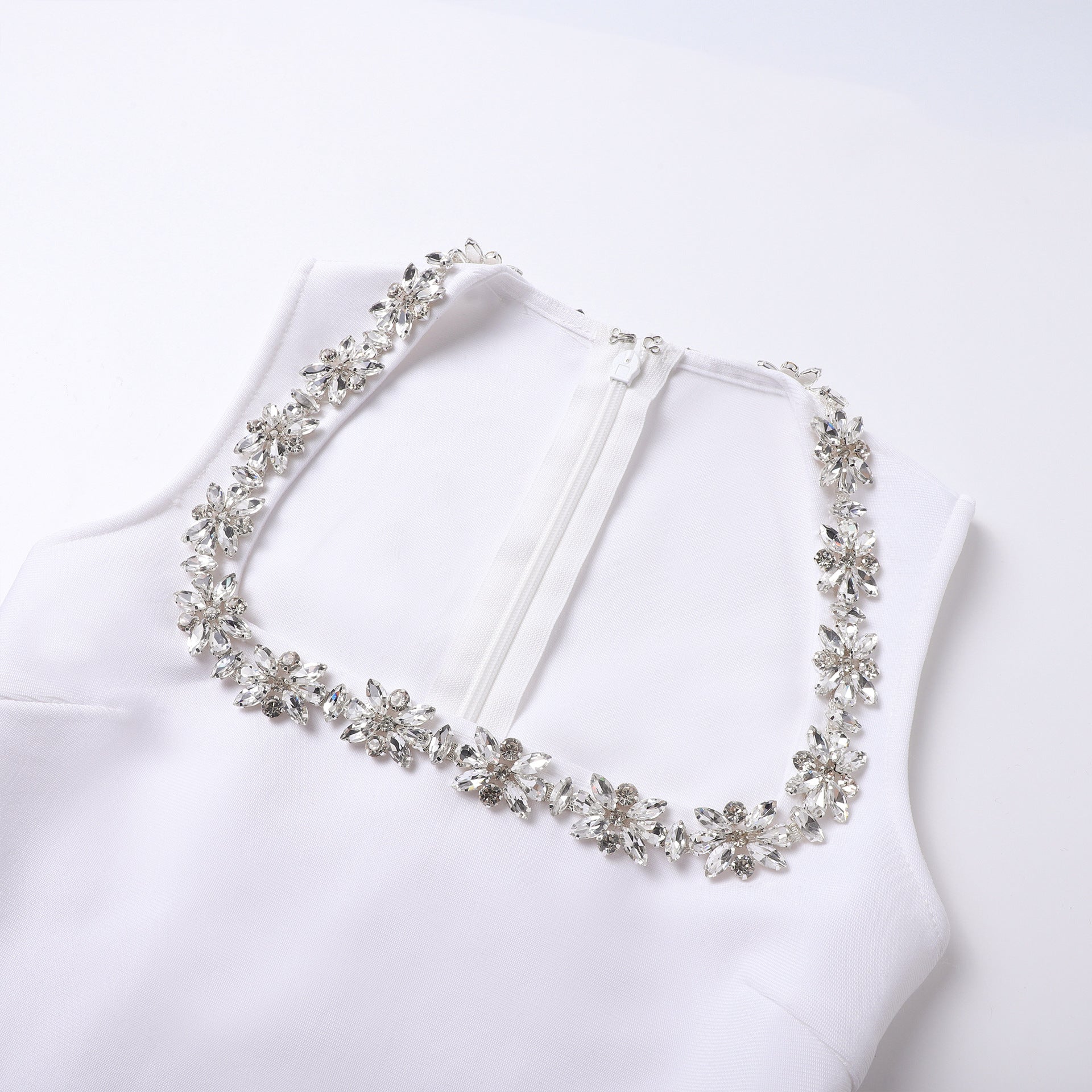 Expertly crafted in a square neck design, this Anila dress is made to stand out with its sparkling crystal embellishments. The mini length adds a touch of playfulness while the white color exudes elegance. Perfect for any special occasion, this dress will be sure to turn heads and make a statement.
