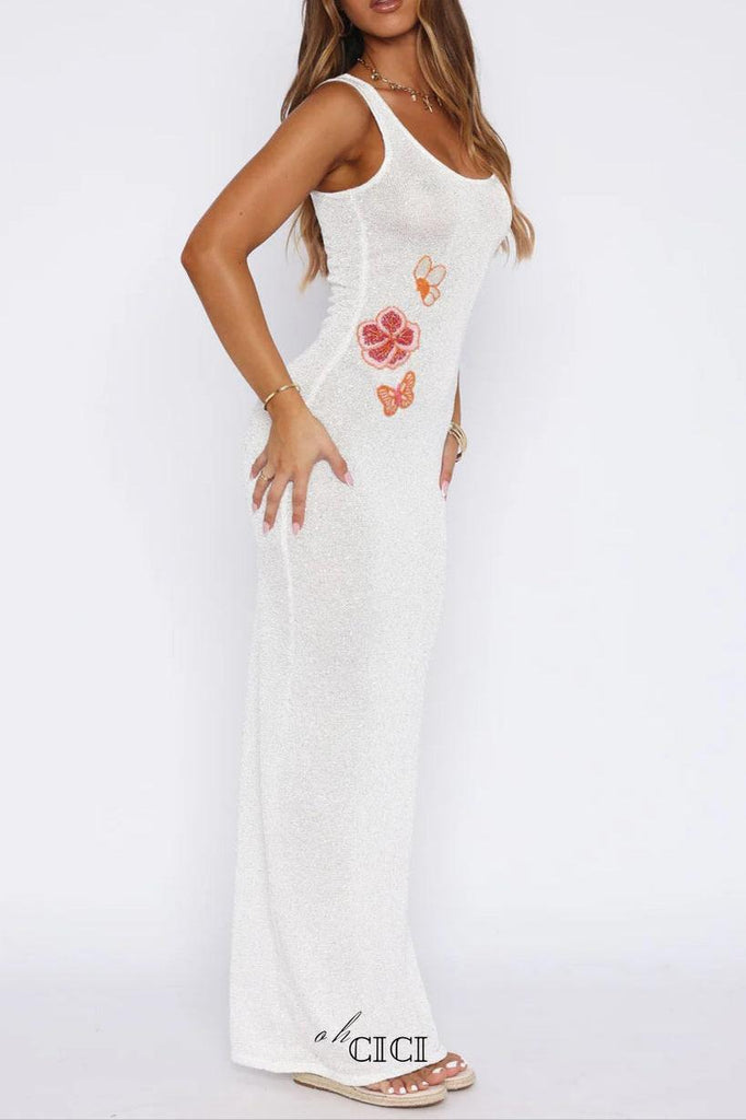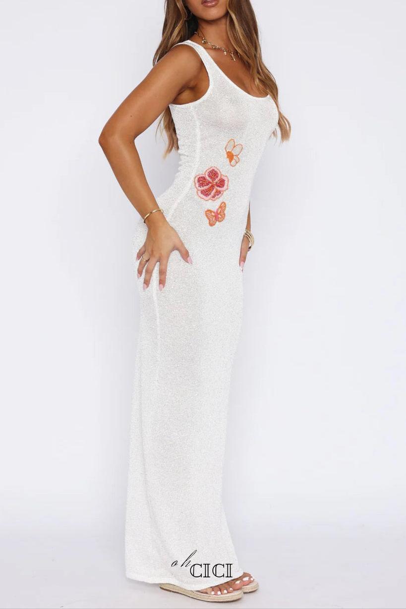 Elevate your wardrobe with the Butterfly Blossom Sequin Knit Maxi Dress in White. This expertly crafted dress features delicate sequin embellishments that catch the light, adding subtle shimmer to its elegant knit fabric. Designed for a flattering maxi silhouette, it combines comfort with sophistication, making it ideal for formal occasions or stylish evening events. The white hue enhances its timeless appeal, ensuring you stand out with refined grace.
