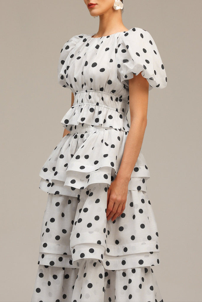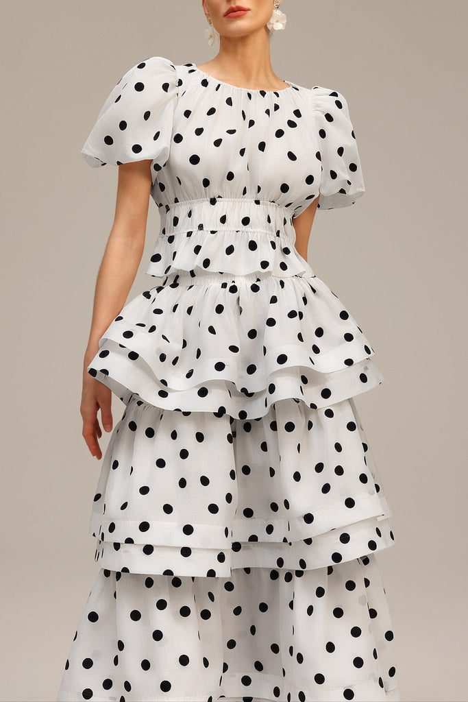 Elevate your wardrobe with the Damla White Puff Sleeves Dot Printed Two-Piece Set, featuring a chic puff sleeve top paired with a coordinating dot-printed skirt. This ensemble balances vintage-inspired details with modern tailoring, offering both style and comfort. Ideal for sophisticated daytime events or casual gatherings, the breathable fabric and flattering silhouette ensure you look polished effortlessly. Perfect for those seeking a refined yet playful look.
