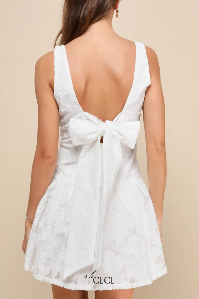 Exuberant Elegance White Jacquard Drop Waist Mini Dress – OH CICI