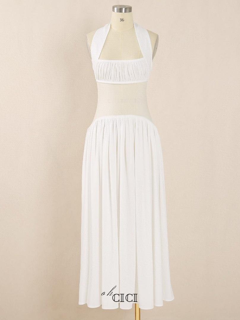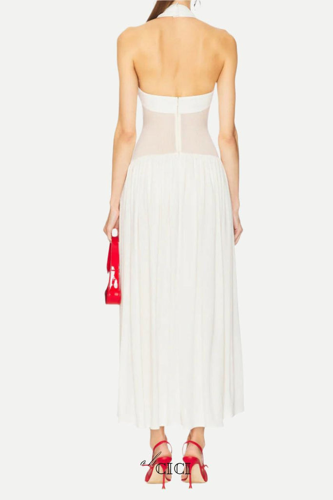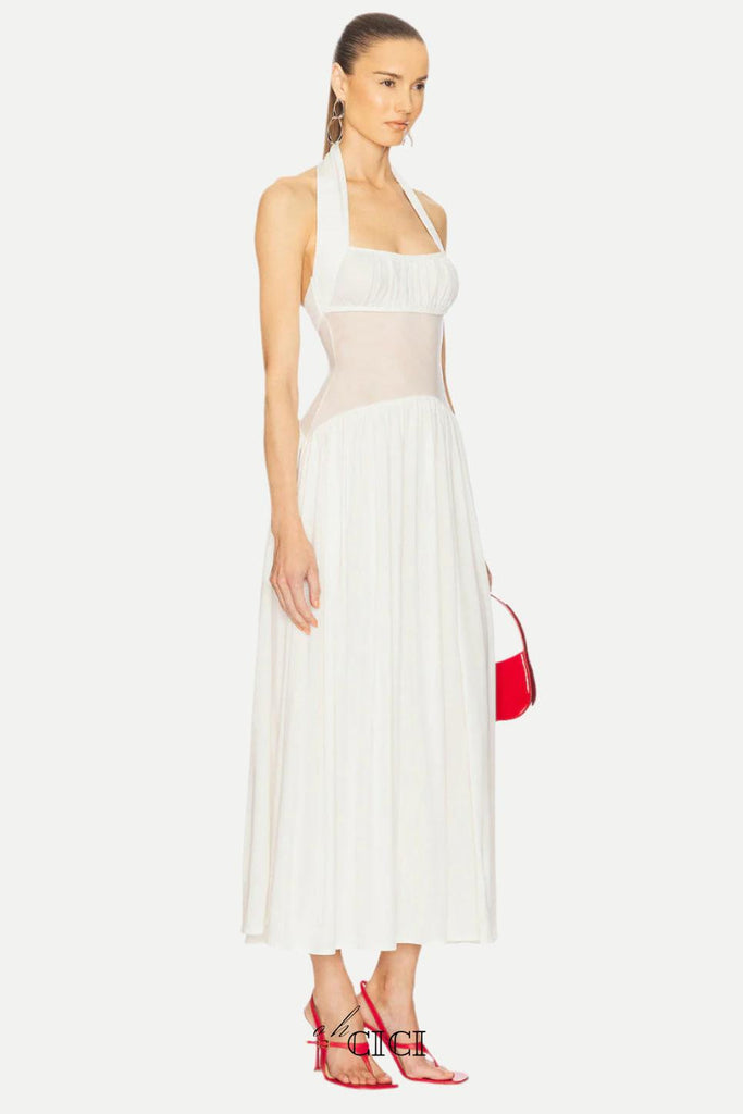 Elegantly designed, the Hilary Halter Neck Ruffle Maxi Dress combines sophisticated style with feminine details. The flattering halter neckline frames the shoulders beautifully, while cascading ruffles add movement and dimension. Crafted in pristine white, this floor-length silhouette offers versatility for formal events, destination weddings, or upscale summer gatherings. The maxi length provides an elongating effect while maintaining a refined aesthetic.