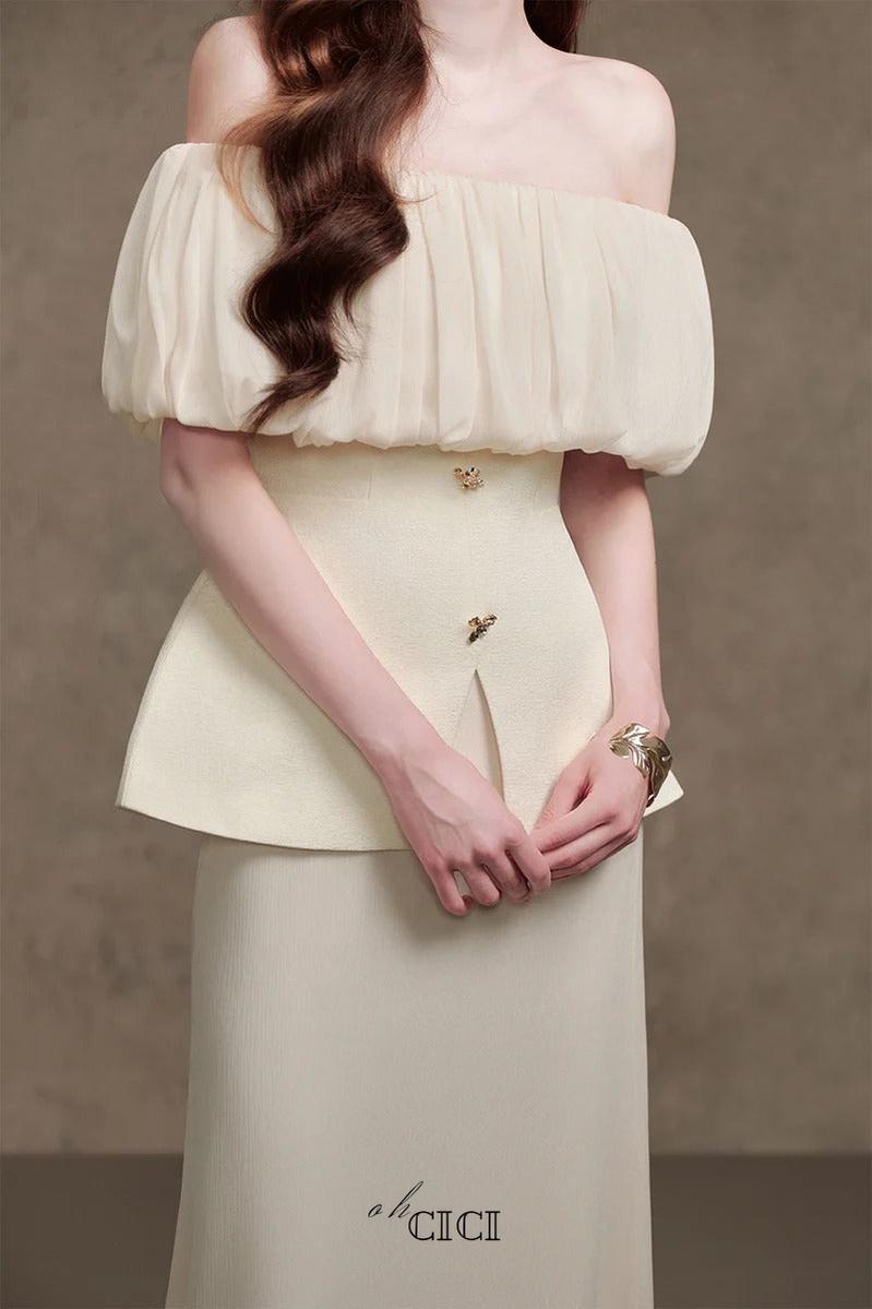 karen Straight Plain Foam Silk strapless Maxi dress in white – OH CICI