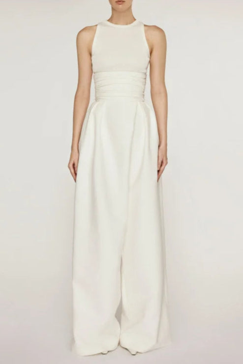 belen Drop Waist Spaghetti Strap Organza Maxi Dress in white