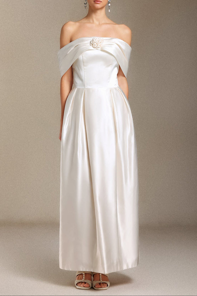karen Straight Plain Foam Silk strapless Maxi dress in white