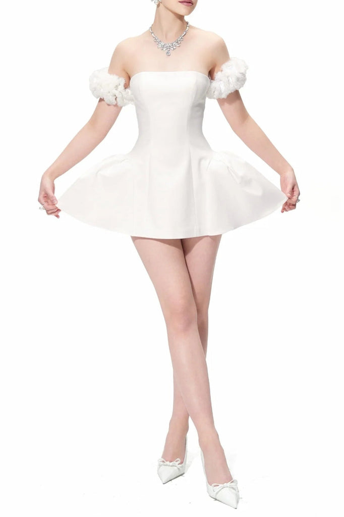 bernice Ruffle Layer Crinkle Chiffon Mini Dress in white