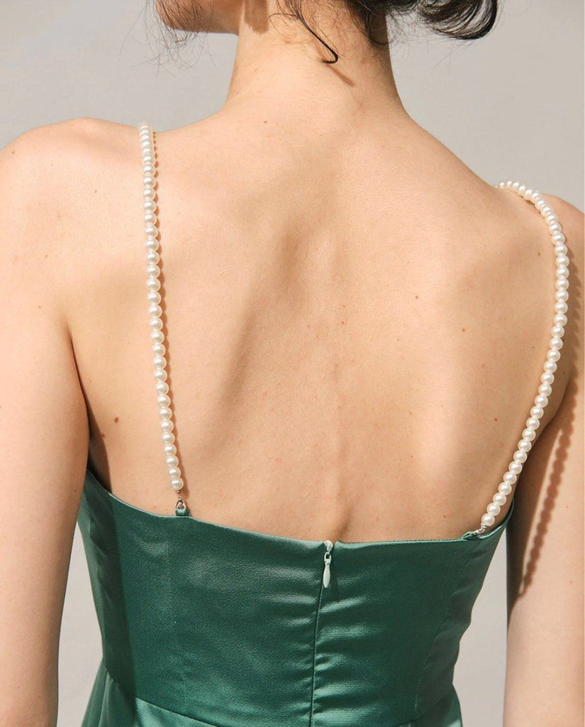 Pearl Strap Satin Mini Dress in green – OH CICI