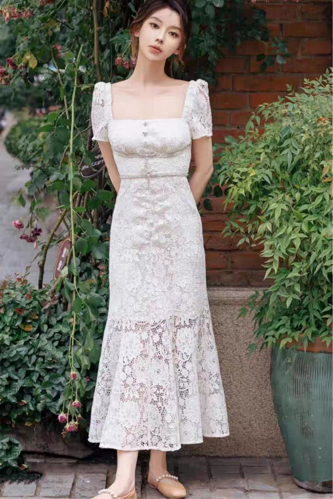 EMBROIDERED LACE MIDI DRESS IN CREAM – OH CICI