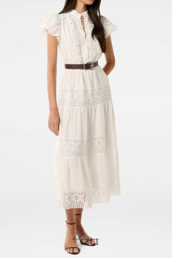 Elevate your wardrobe with the White Adelaide Lace Belted Trim Midi Dress, a refined choice for occasions requiring elegance and subtle sophistication. Crafted from delicate lace, this midi-length dress features a tailored belt that defines the waist, enhancing silhouette and providing a flattering fit. The intricate lace detailing and refined trim add texture and depth, making it versatile for both daytime events and evening gatherings. Designed with both style and comfort in mind, this dress offers an expert blend of classic charm and modern structure.