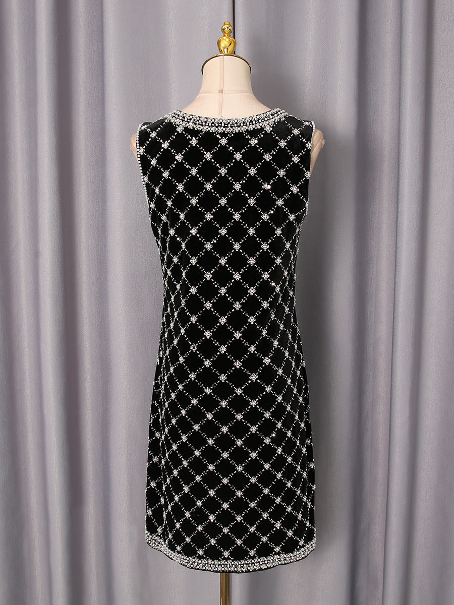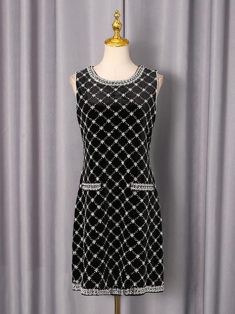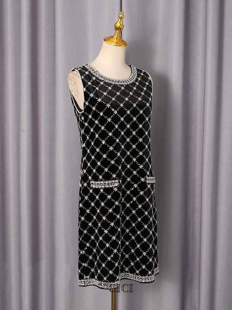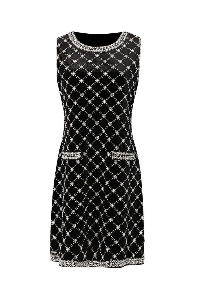 The Amanda dress combines timeless plaid patterning with a modern diamond motif for an effortlessly chic look. This sleeveless mini silhouette offers versatility—dress it up for evening events or down for casual outings. The black-and-white colorway ensures easy styling with your existing wardrobe, while the structured design provides flattering support. Perfect for those seeking a statement piece that balances classic elegance with contemporary flair.