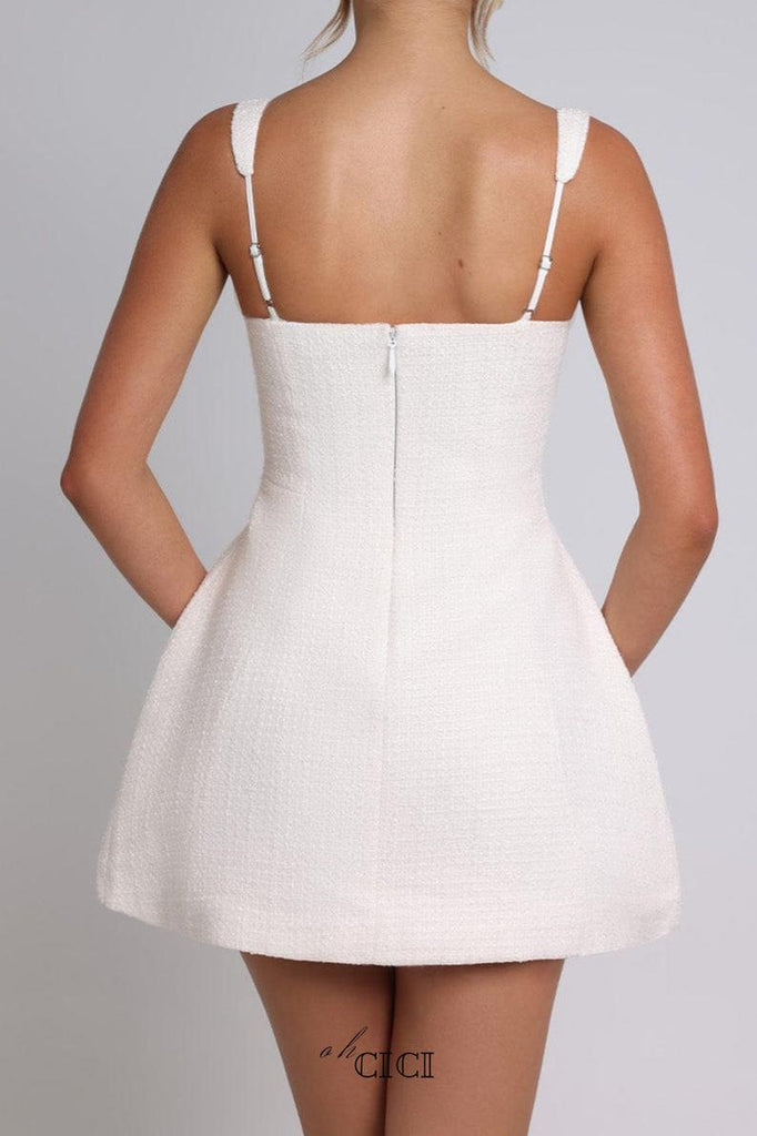 Step in, stand out, and show them how it's done in the Bessie mini dress. A super chic look, it's made from premium textured tweed fabric with a square neckline, adjustable straps and a bubble shape skirt for extra drama. Complete with pearl-adorned welt pockets, seam details to the body ensure a figure-hugging fit.