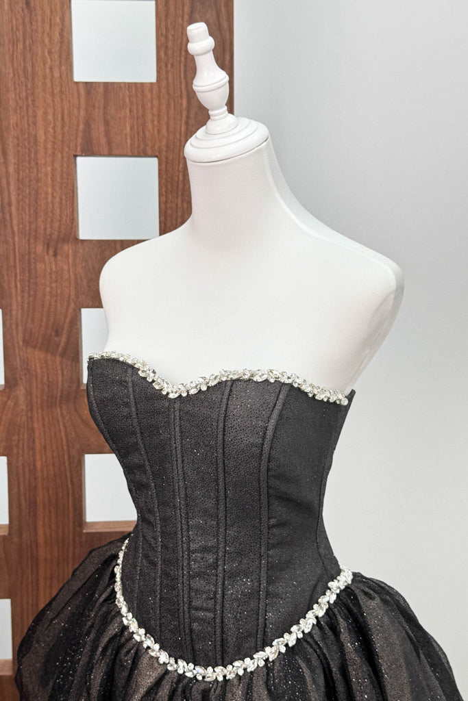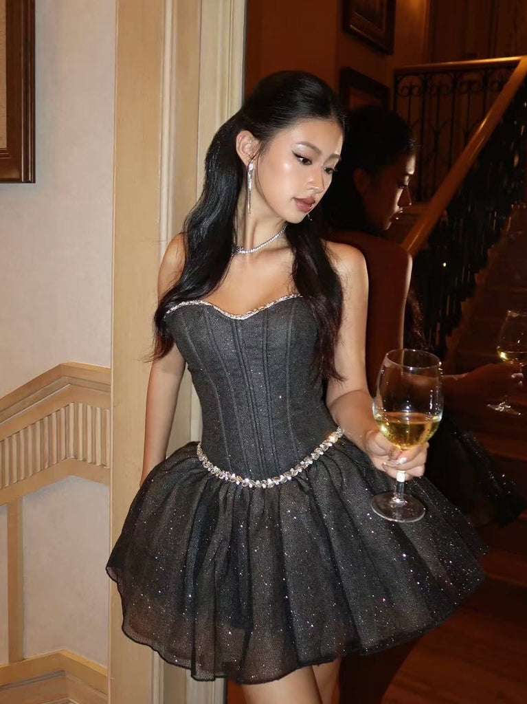 Elevate your style with the Debby Tube Top Fishbone Mesh Tulle Tutu Mini Dress in black. This expertly designed piece features a sleek tube top silhouette paired with delicate fishbone mesh overlay, adding texture and visual intrigue. The voluminous tulle tutu skirt creates a dramatic, yet sophisticated look, perfect for evening events or special occasions. Crafted for a flattering fit, this mini dress balances edgy details with feminine charm, making it a standout choice for confident, fashion-forward wearers.