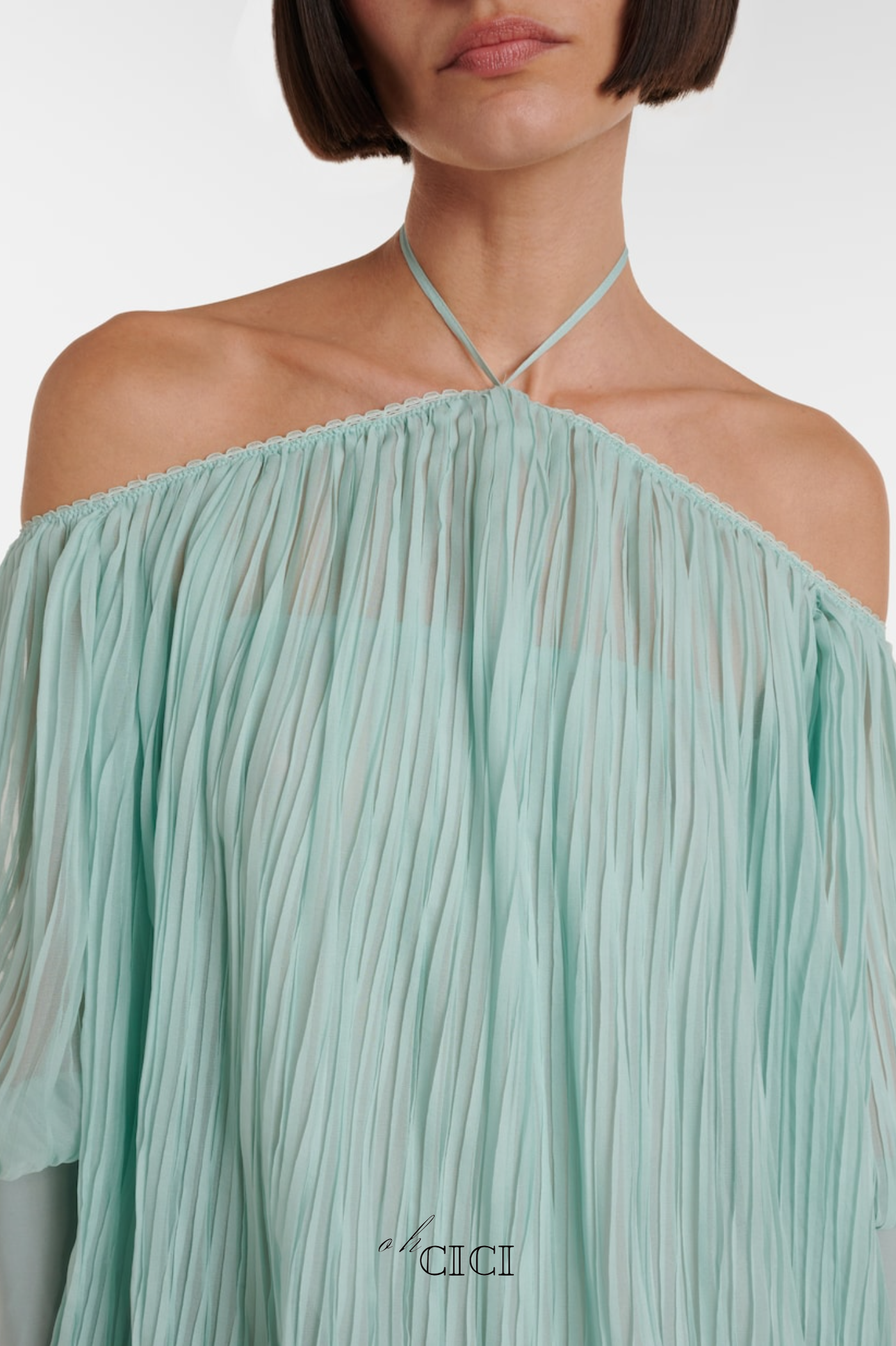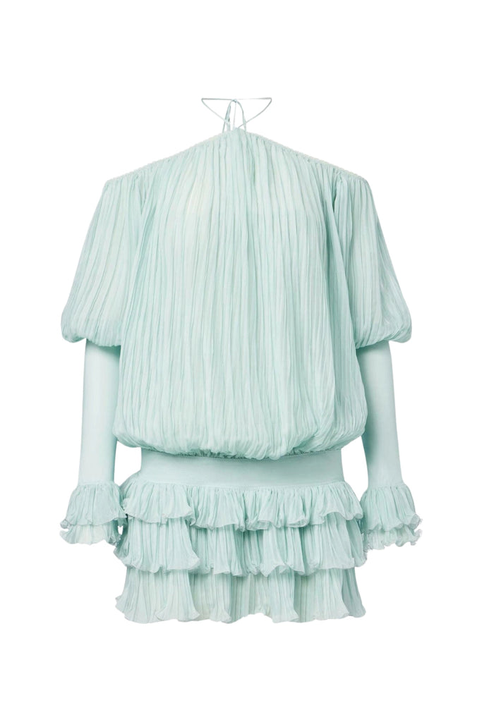 Elevate your wardrobe with the Halter Pleated Ruffle Mini Dress in Green. This elegant piece features delicate pleats and graceful ruffles that create a refined silhouette. The halter neckline adds a touch of sophistication, making it perfect for upscale events or stylish evenings out. Crafted to combine comfort with chic design, this mini dress offers a flattering fit that enhances your natural elegance.