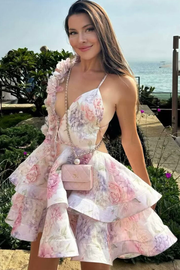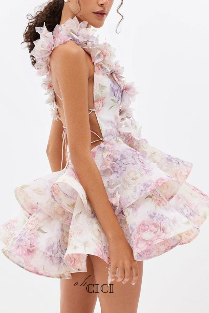 The Helen 3D Flower Chiffon Ruffle Mini Dress in pink combines delicate craftsmanship with a chic silhouette. Made from lightweight chiffon, its 3D floral accents add texture and visual interest, while the ruffle detailing enhances movement and femininity. This mini dress offers an elegant yet playful look, ideal for special occasions or stylish everyday wear. Its soft pink hue complements various skin tones, making it a versatile addition to your wardrobe.