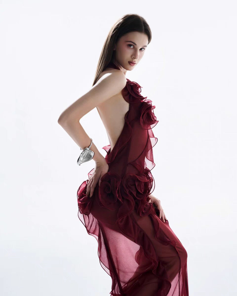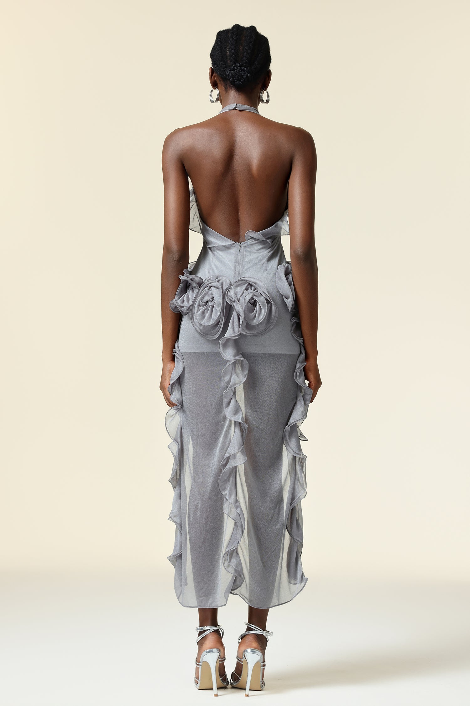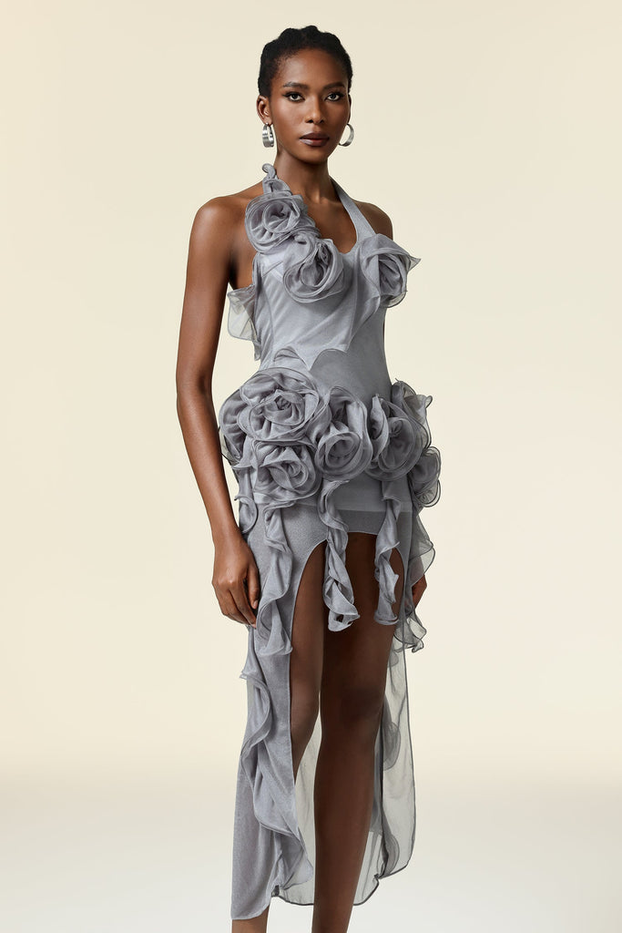 melissa grey Flower Asymmetric Folds Streame Mini Dress – OH CICI