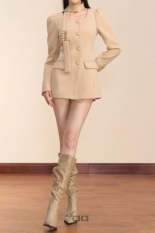 The Molly square neck mini blazer dress combines tailored sophistication with modern versatility. Featuring a structured square neckline and long sleeves, this khaki piece delivers polished elegance for both professional and casual settings. The mini length creates a contemporary silhouette, while the blazer-inspired construction ensures a refined fit. Layer it over basics for office wear or style it standalone for elevated weekend looks. A wardrobe essential that transitions seamlessly from day to evening.