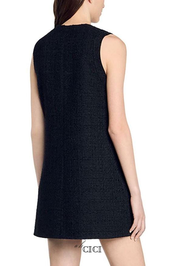 valerie sleeveless Tweed mini Dress in black – OH CICI
