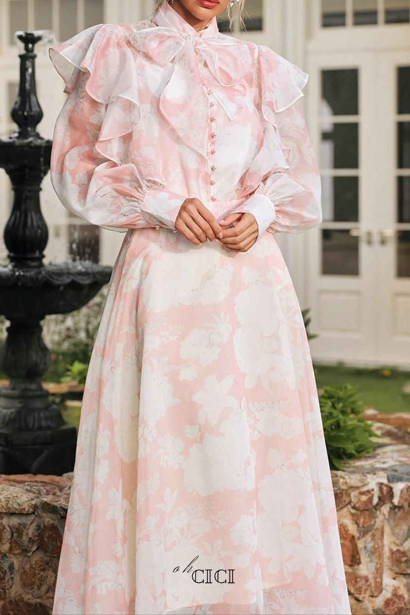 amanda High Neck Floral Organza Blouse maxi skirt set in pink – OH CICI