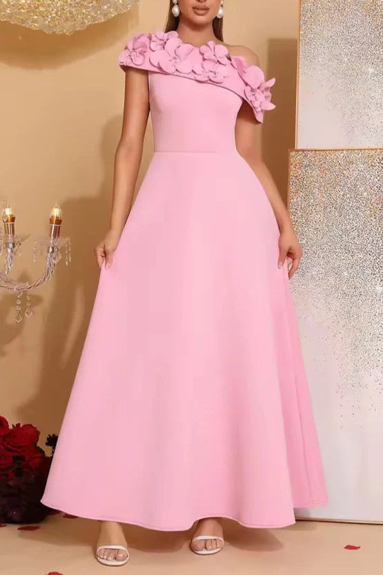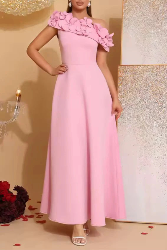 Elevate your wardrobe with the Cynthia Flower Slanted Collar Maxi Dress in pink. Featuring a distinctive slanted collar and delicate floral pattern, this dress offers a sophisticated yet effortlessly feminine silhouette. Its flowing maxi length ensures graceful movement while the soft pink hue adds a touch of elegance. Perfect for both casual outings and special occasions, this dress balances comfort with refined style.