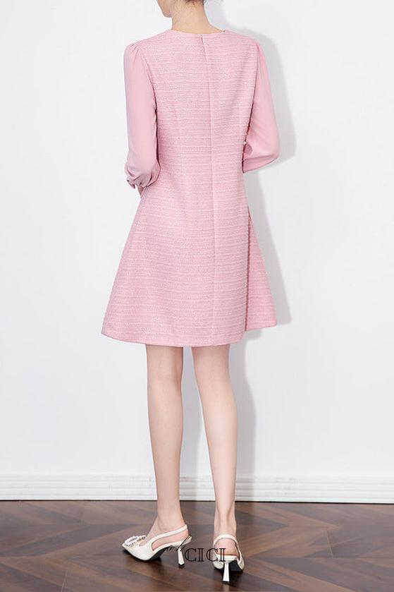 alani Embossed Chiffon Puff Sleeves mini Dress in pink – OH CICI