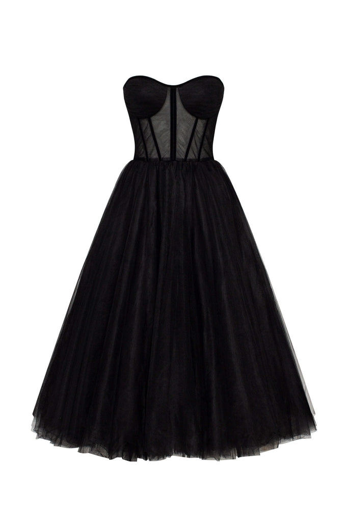 Black Strapless Puffy Midi Tulle Dress – OH CICI